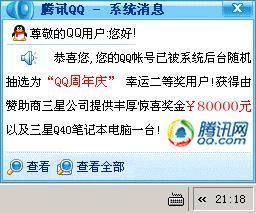 圖6:廣告木馬偽裝QQ中獎消息推廣釣魚(yú)網(wǎng)站