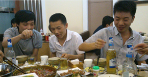 五一過(guò)后,成都的溫度驟升至33度,讓所有人都有點(diǎn)不適應。昨日趁著(zhù)天氣微涼,公司領(lǐng)導帶領(lǐng)全公司員工在單位附近的“自貢香香嘴”舉辦了一次聚餐活動(dòng)。大家都知道,自貢菜是出名的辣,這不,看看同事們,吃著(zhù)辣辣的自貢菜,喝著(zhù)小酒,是不是感覺(jué)很愜意呢?