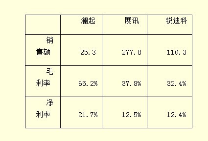 銳迪科是國內芯片設計公司中少有的技術(shù)全面、產(chǎn)品廣泛的公司。產(chǎn)品線(xiàn)布局之寬在中國公司中絕對是鳳毛麟角,從FM,PA,Tuner,RF,藍牙到基帶可以說(shuō)“無(wú)所不有”;而針對的市場(chǎng)則是機頂盒、電視機、手機也是“無(wú)所不在”。并且在擁有了足夠多的產(chǎn)品之后,在供應商面前的議價(jià)能力大大加強,反過(guò)來(lái)進(jìn)一步保證了產(chǎn)品在價(jià)格戰中的優(yōu)勢。