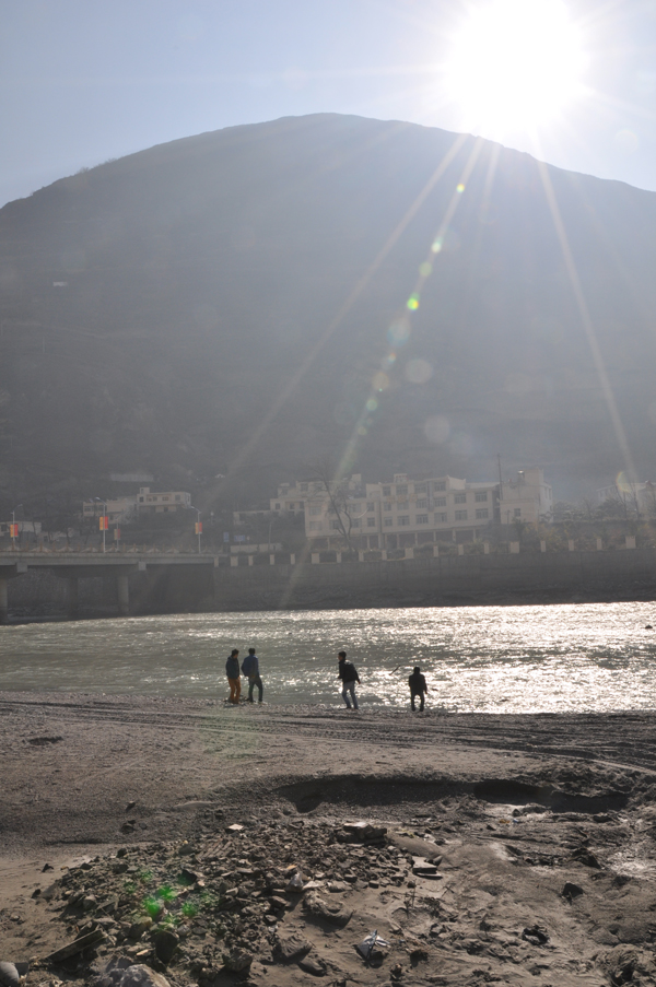 陽(yáng)光明媚,讓在成都霧霾天氣下待久了的我們瞬間雀躍起來(lái),途中經(jīng)過(guò)一條不知名的河流,大家高興的玩了起來(lái)~~~