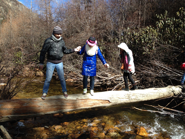 過(guò)獨木橋,同事們互相攙扶著(zhù),多有愛(ài)啊~~~