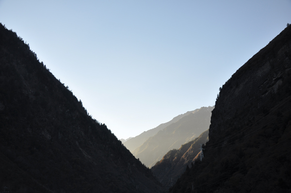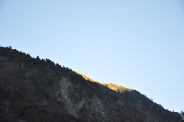 驅車(chē)到達畢棚溝溝口,群山在夕陽(yáng)的余暉下,顯得甚是美麗。