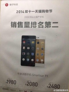 原來(lái)如此。根據之前錘子官方公布的數據,雙十一錘子科技天貓旗艦店共售出12792部Smartisan T1手機,在天貓的手機品牌中排名第五。
