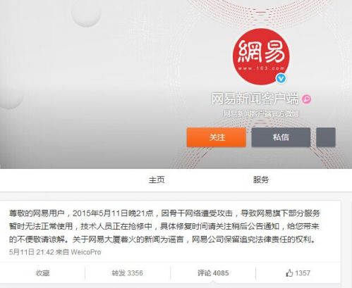 網(wǎng)易回應服務(wù)器癱瘓:骨干網(wǎng)絡(luò )受攻擊正搶修
