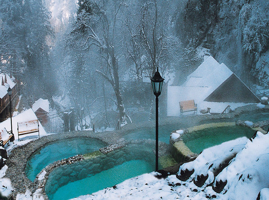 這里出名的不止常年不化的古老冰川,還有來(lái)自貢嘎山脈的溫泉