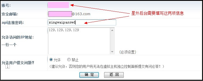 2、點(diǎn)擊左側的“代理商管理”——“API接口配置”,設置好您的接口用戶(hù)名和密碼,允許訪(fǎng)問(wèn)的IP地址填寫(xiě)您的星外系統主控服務(wù)器的IP.如圖: