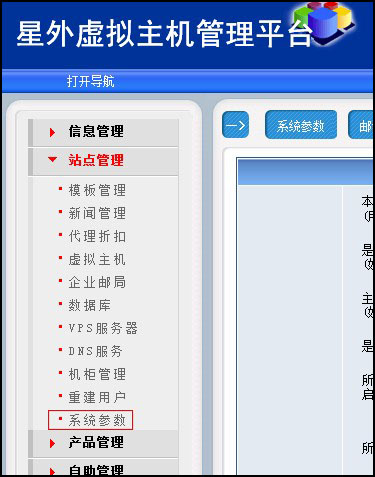 登陸后,點(diǎn)擊“站點(diǎn)管理”——“系統參數”,如圖: