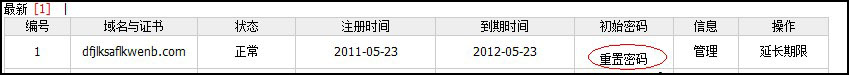 會(huì )返回到域名管理列表后,再點(diǎn)擊“重置密碼”,即可用新的密碼來(lái)登陸管理域名了。如圖: